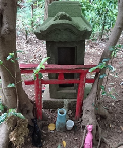 女化神社に関連する一番古い造営物が奥の院の石の祠になります。これは郷土の民話「狐の恩返しに」に登場する母狐が穴に隠れたところで、「お穴」と言われ、悲劇の狐を哀れんだ人々によって祀られています。
