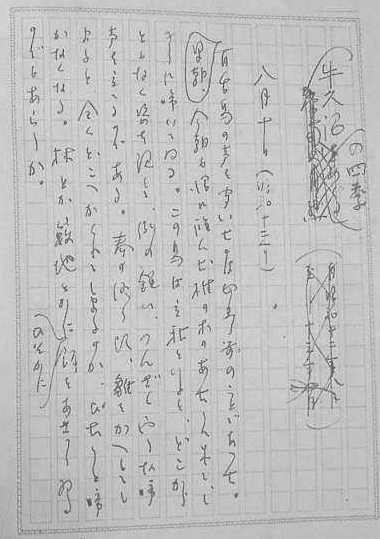直筆原稿「牛久沼の四季」