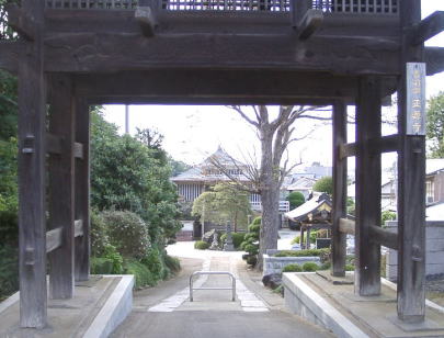 正源寺は、本陣の手前の火ノ見櫓の傍へ切り込んだところに在った。背後は、鬱蒼たる木立で、山門を入ると石畳の道が傾斜して茅葺屋根の本堂へ通じている。