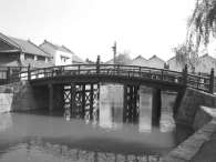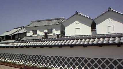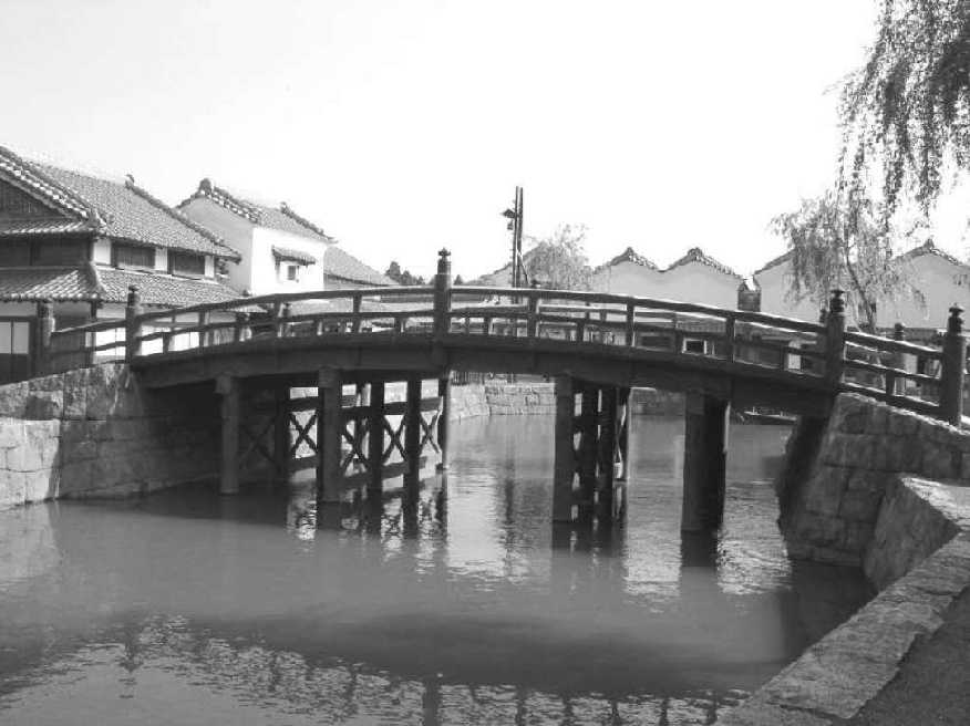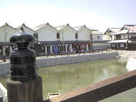 橋の向側には回船問屋が建ち並んでいる。