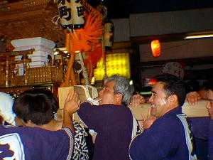| ワッショイワショイもう一息頑張れ! | う〜、今年の神輿は何て重いのだろう。 |