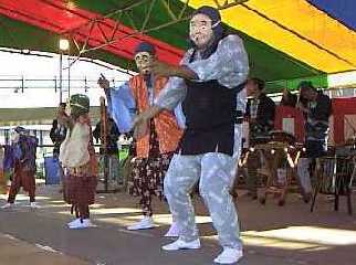 牛久かっぱ祭りは楽しいイベントがいっぱい。 笛や太鼓のリズムに乗って大人と子供のひょっとこが踊る。 新川囃子、牛久壹番組社中の皆様による演奏と踊り。 |