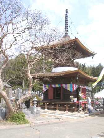 | 天台宗来迎院の本尊は阿弥陀如来の立像と言われている。寺院の入り口に優美に聳える「多宝塔」は有名で、資料によると「この建築物は、仏教の神髄経たる妙法蓮華教の解説に準じて造営されたもので、即ち建物自体が多宝如来様の尊像である。中心に釈迦如来様の尊像が納められてあり、この大世界の本地仏と垂跡仏とが一緒に祀られている。したがって、この建物の全貌を礼拝すれば、功徳莫大にして如何なる願いもかなう」となっている。 この種の多宝塔は、竜ヶ崎と丹後国の全国に2つしかないといわれている。建立は室町後期と思われる古塔である。 多宝塔の解説板によると。 この塔は供養塔とも呼ばれるが、正しくは多宝塔を称し、大日如来の本体としている。 当地領主土岐治英は、この境内の東方にある県指定文化財の沼田城(1308)跡に眠る、南朝の征夷大将春日顕国以下、戦に敗れた幾多の戦土の霊魂の冥福供養のため、さらには万民安泰のため、後に奈良天皇の御政所に奉し、如来の加護を祈って、弘治2年(1555)、この塔を建立したもので、当山本寺の逢善寺第15代定珍和尚によって開幕された。 以上解説板より抜粋 |