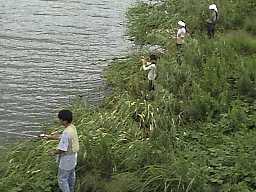 | 牛久沼にはいっぱい魚がいてね、でも最近は妙な魚が増えたの、あの魚、バスって呼んでいるけど、あまりおいしくないな~、でも人間様は好きみたいだね。そう、たくさんの人が釣りに来るよ。うれしいな、ボ~クたくさん人の集まるところ好きなんだ。 でもね、、、たくさん人集まるのは嬉しいけど、ゴミ捨てないでね、こう見えても河童は綺麗好きなんだよ。お願いよ!! |