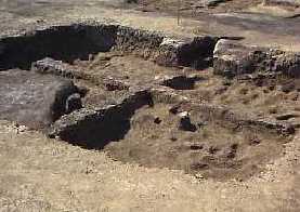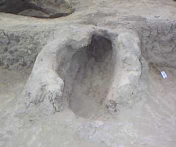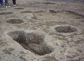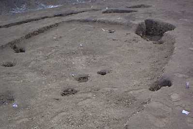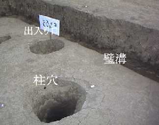 右上の窪みは土坑で、貯蔵庫と考えられる