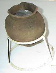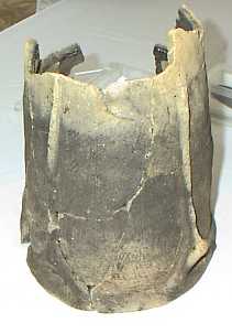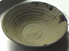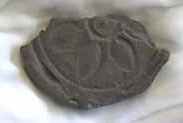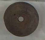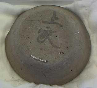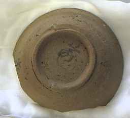 お寺で使われたもので、右上の黒ずんだ部分が、油火で焼けた跡。杯の転用と考えられる