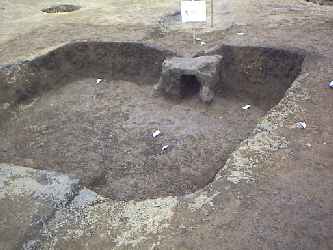 この竪穴から遺物は出土していないため、時代を特定する事が出来ないが、中央上部のカマドは、箱型が飛び出していて、古墳時代後期の特徴を持ったものである。