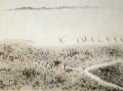 昭和12年の作品。後方に描かれた水辺は牛久沼とも思えるが、芋銭は当時、北相馬郡文村横須賀に滞在したことを思うと、おそらく利根川であろう。と、い