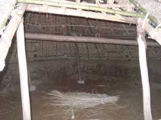 | 完成間近の竪穴住居 | 竪穴式住居内部 |
