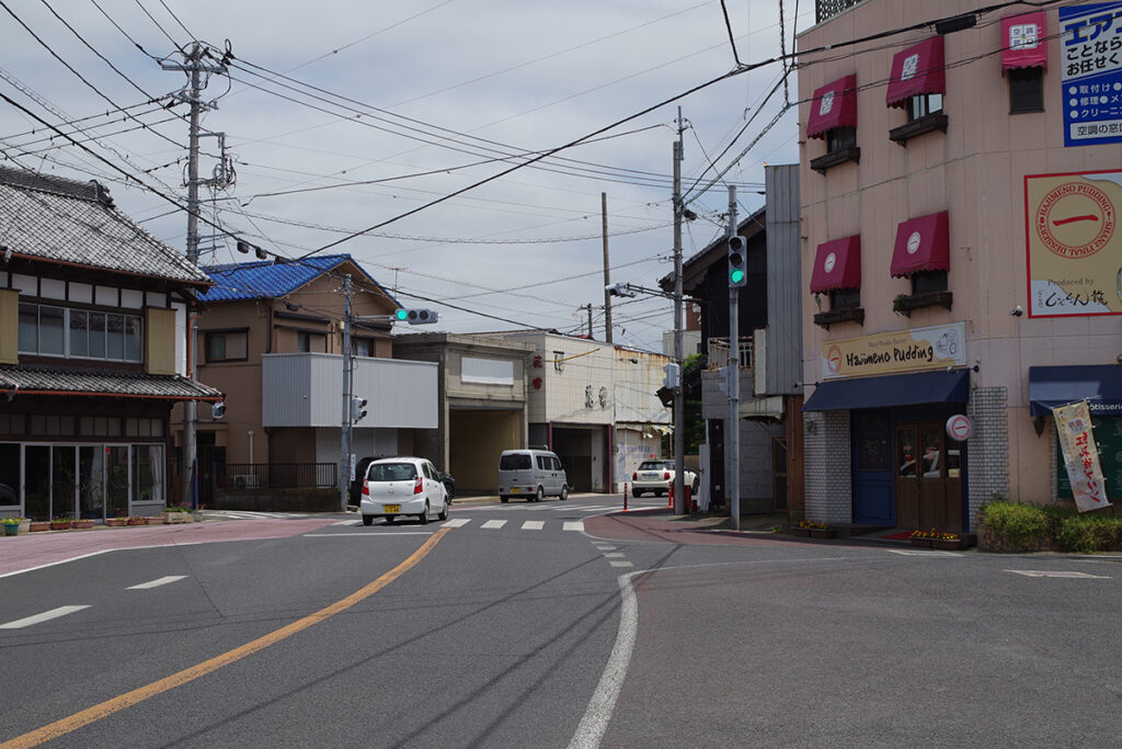 戦国時代のまちづくりの方法として、町と町の境界線を意図的にかぎ型に曲げ、自由な往来が来出来ないように木戸で区切っていました。