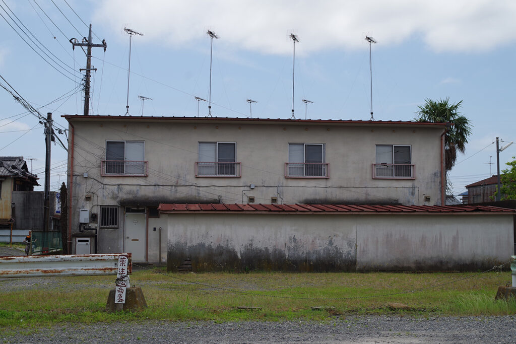 大正座があった敷地には現在アパートが建っています。その手前の空き地にはレンガ造りの龍ケ崎町警察が建っていました。