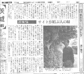 詳細はここ平成17年6月23日朝日新聞茨城版朝刊"街がたり人がたり"龍ヶ崎市では、「若柴宿、サイトが結ぶ人の縁」として、私と若柴宿が紹介れた。