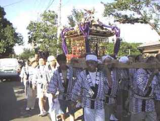 祇園祭の担ぎ手は氏子後援会が中心となって町内から集められ、それに子供御輿が加わり、こちらは地元の小学生高学年が担ぎ、更に低学年用に花御輿が用意されている。